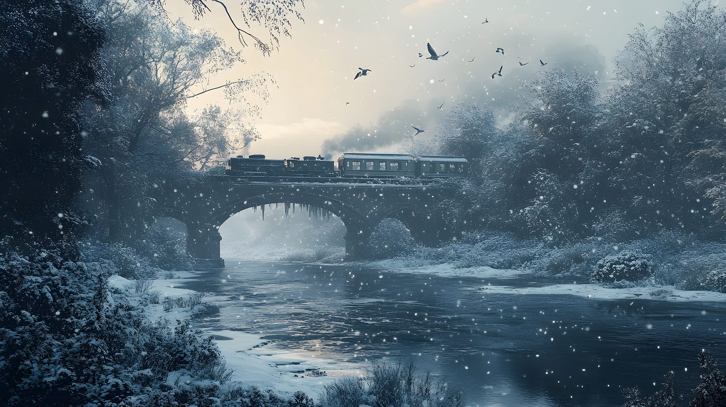 My guide stood hale and hearty, even pleased as I stepped into the next car. In fact, he had never seemed so real to me as he did now. I hazarded a smile, to which he kindly tilted his head. The railcar was warm, bedecked in green garland, with paned windows looking out to fields of snow. There were only a few oversized chairs here, a couch, and no end of blankets. The smell of split fir and aged apple trees drew my attention to the far end, where firewood lay stacked all around the arched exit, to the ceiling. In the center of the car, upon a round, bricked hearth, stood a cast iron stove, its pipe running up through the roof. All along the car, on both sides, were shelves beneath the windows. Shelves filled with books and boardgames, with crafts and curios. Silver glinted from a thousand accents – bells tied in garland, stars hung from the ceiling, spoons set beside cups of spiced cider.